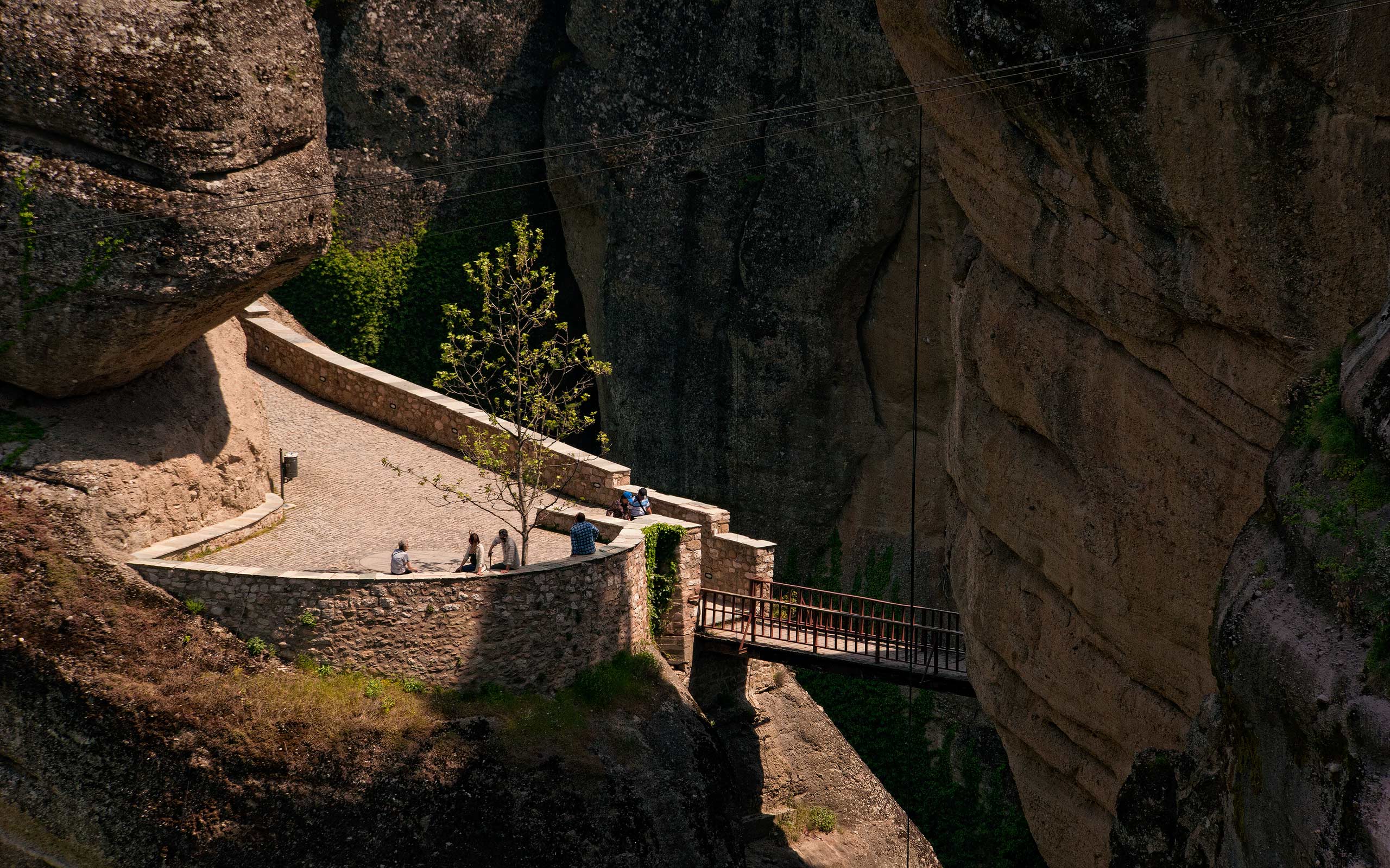 Entrance bridge to Varlaam Monastery. Meteora, Thessaly, Greece